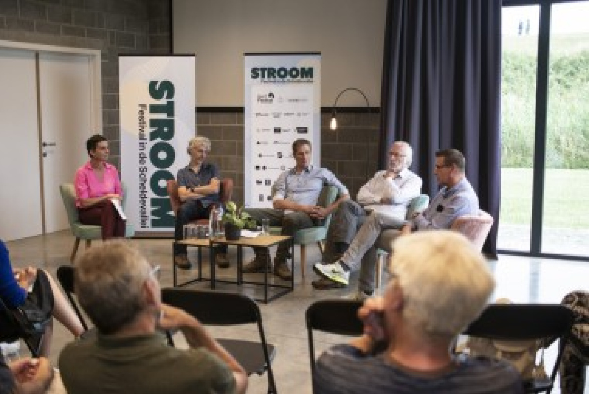 Interlocutors during this discourse are prof. dr. Patrick Meire (UAntwerp), Hans De Preter (De Vlaamse Waterweg), Joris Blanckaert (engineer and composer) and Lieven Nachtergale (Agentschap voor Natuur en Bos). Ann De Bie, journalist and also trusted host of the annual Scheldt Symposium, leads the conversation in the right direction.