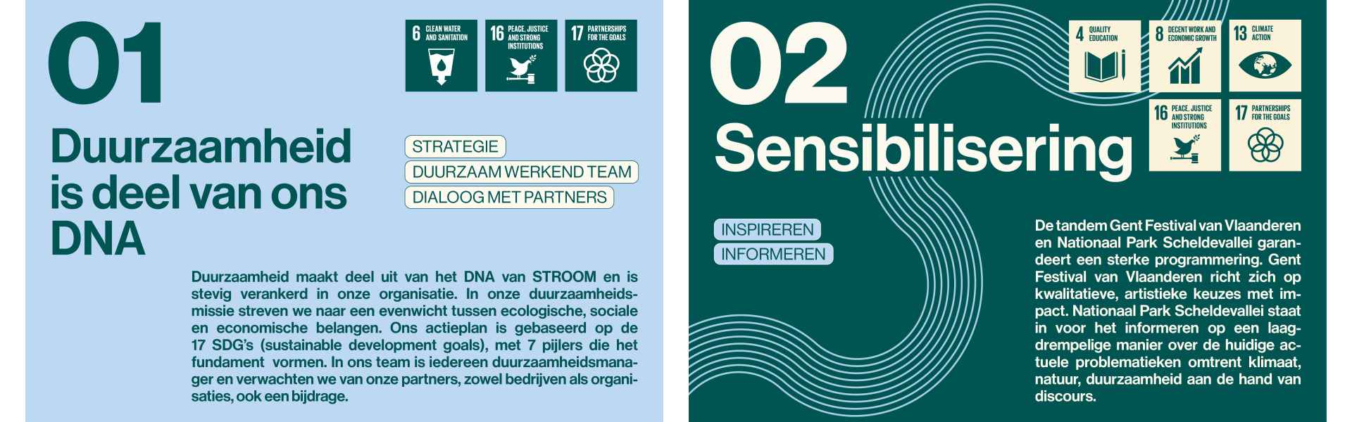 Benieuwd naar hoe we Festival STROOM duurzaam organiseren? Lees meer over onze doelstellingen: